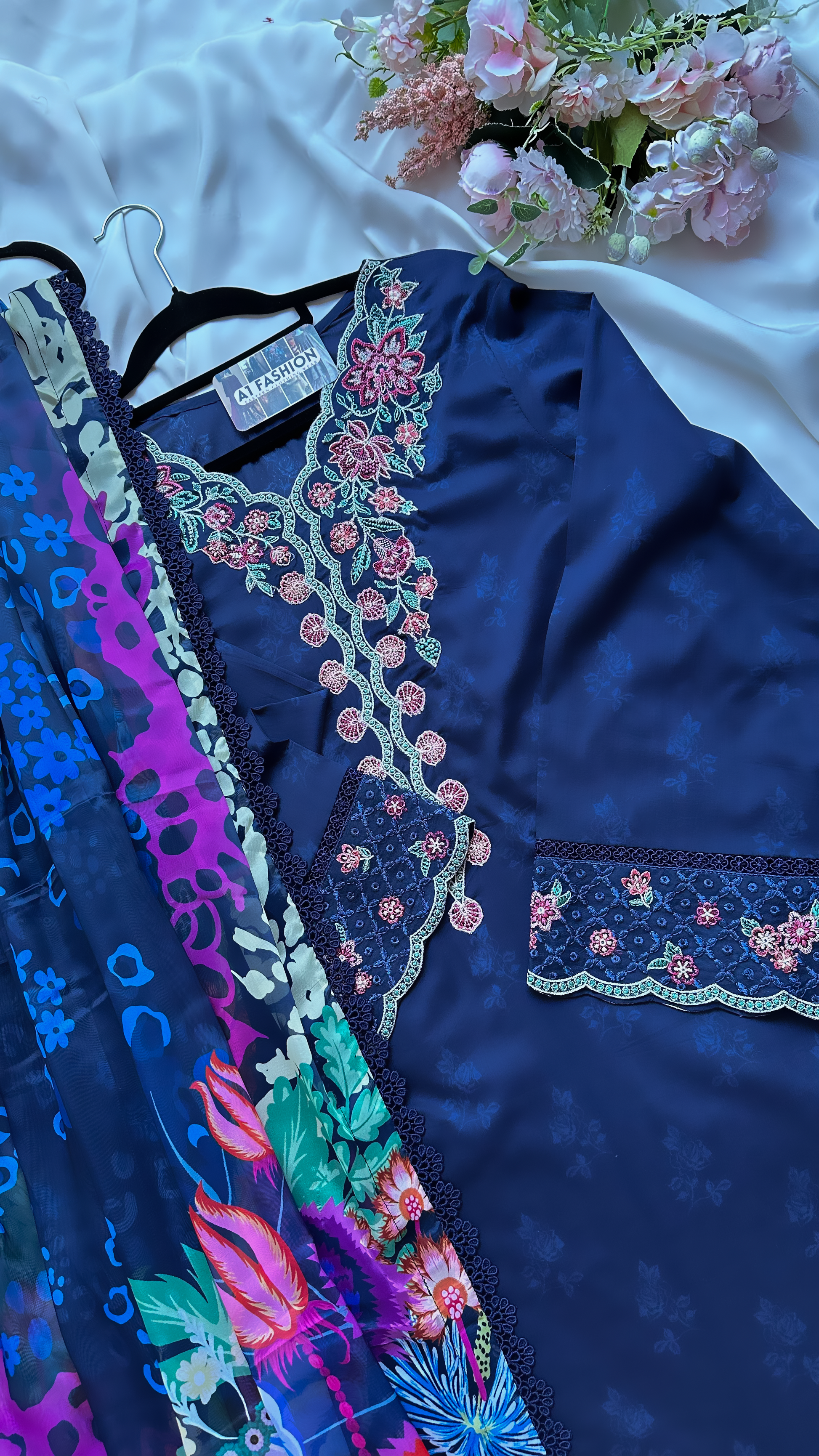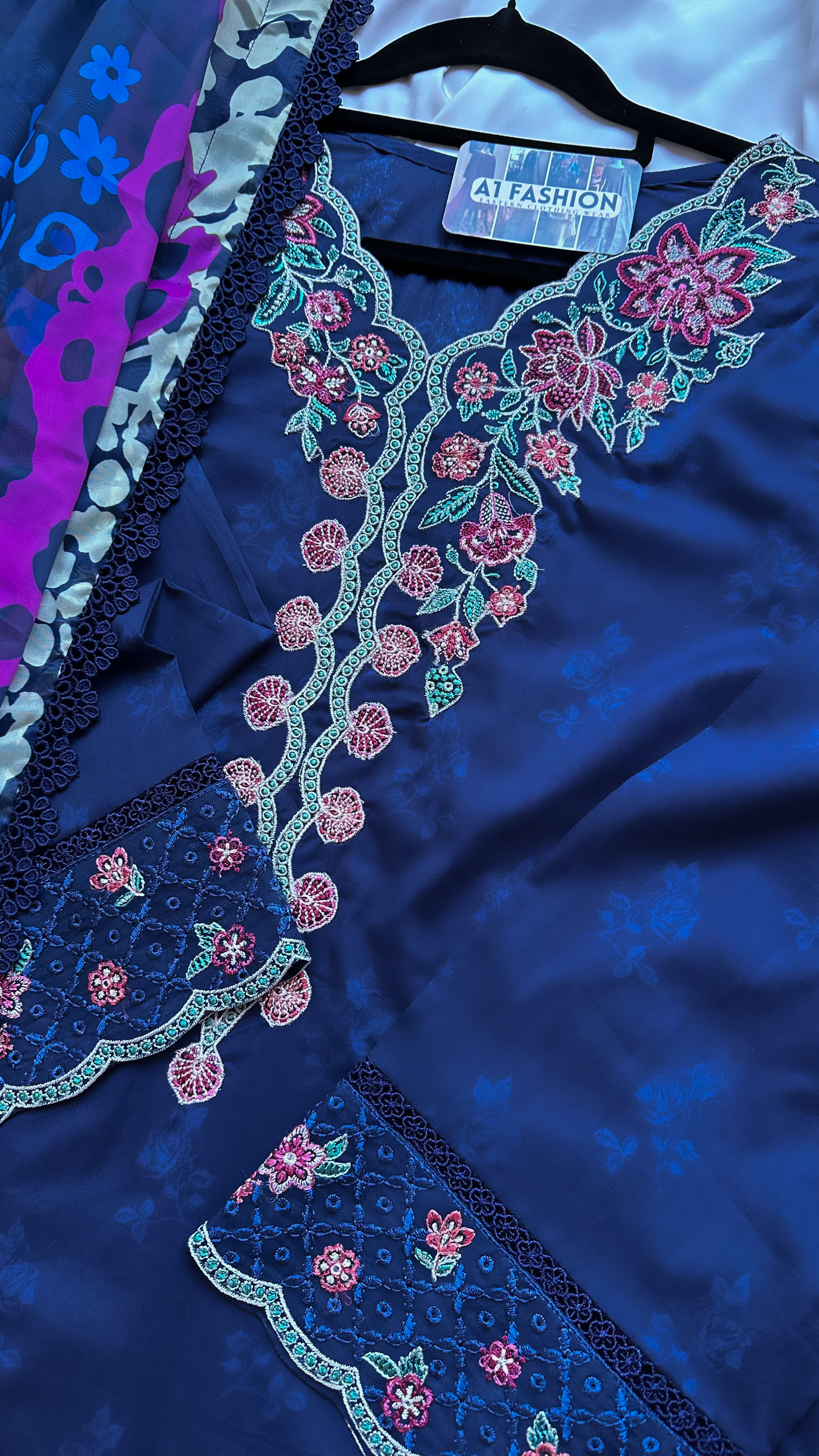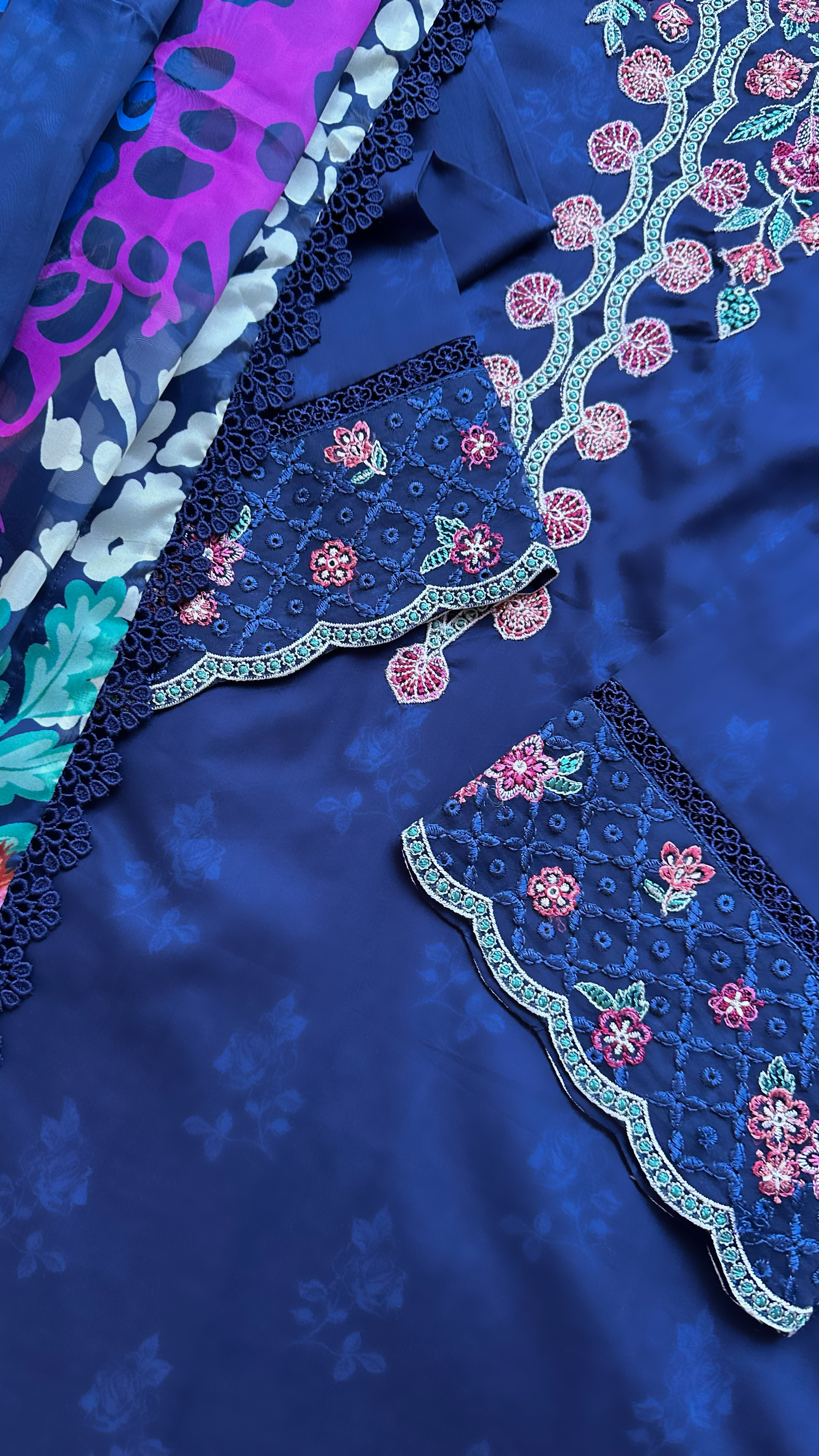 Digital printed borer embroidered lawn front