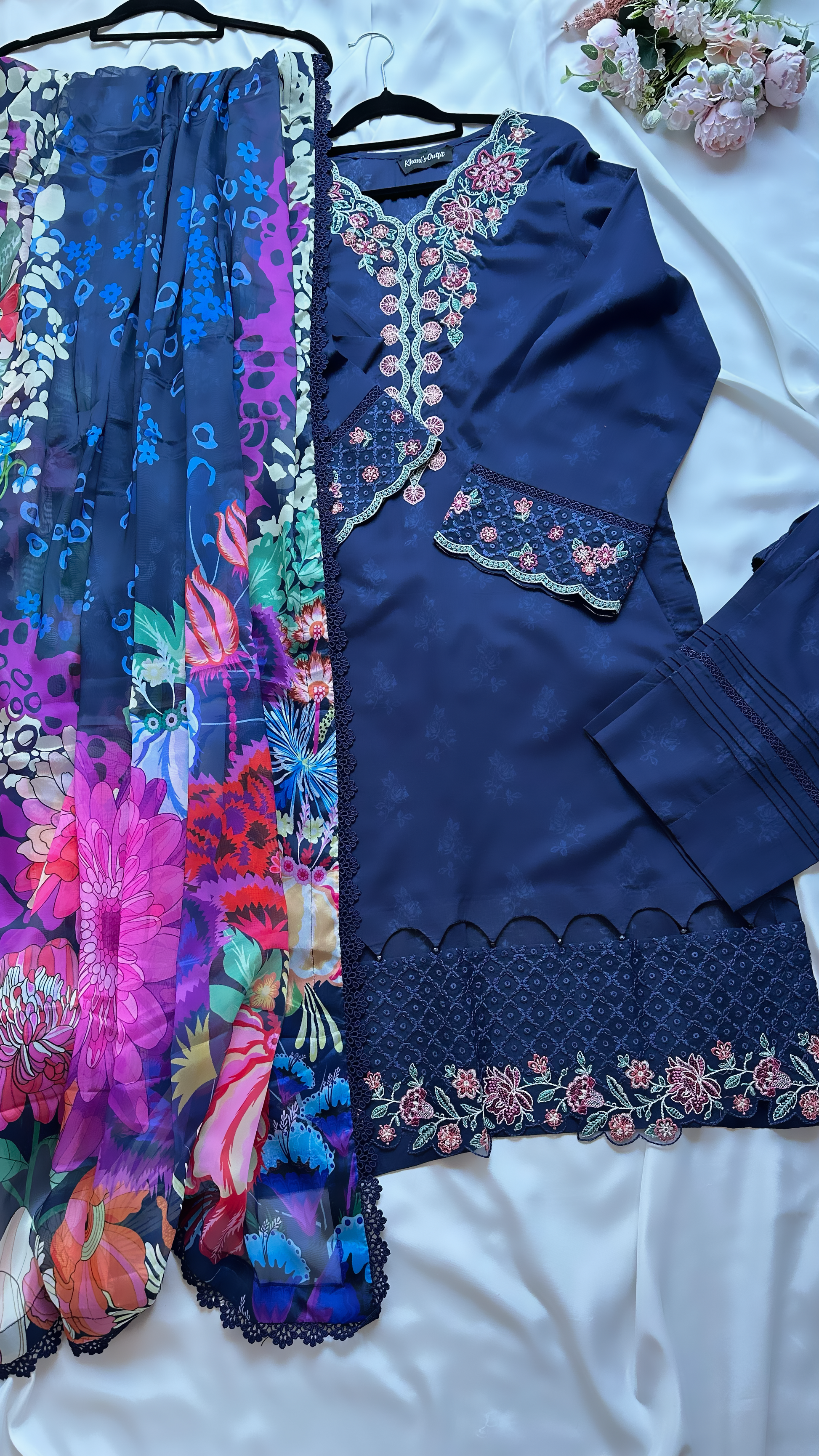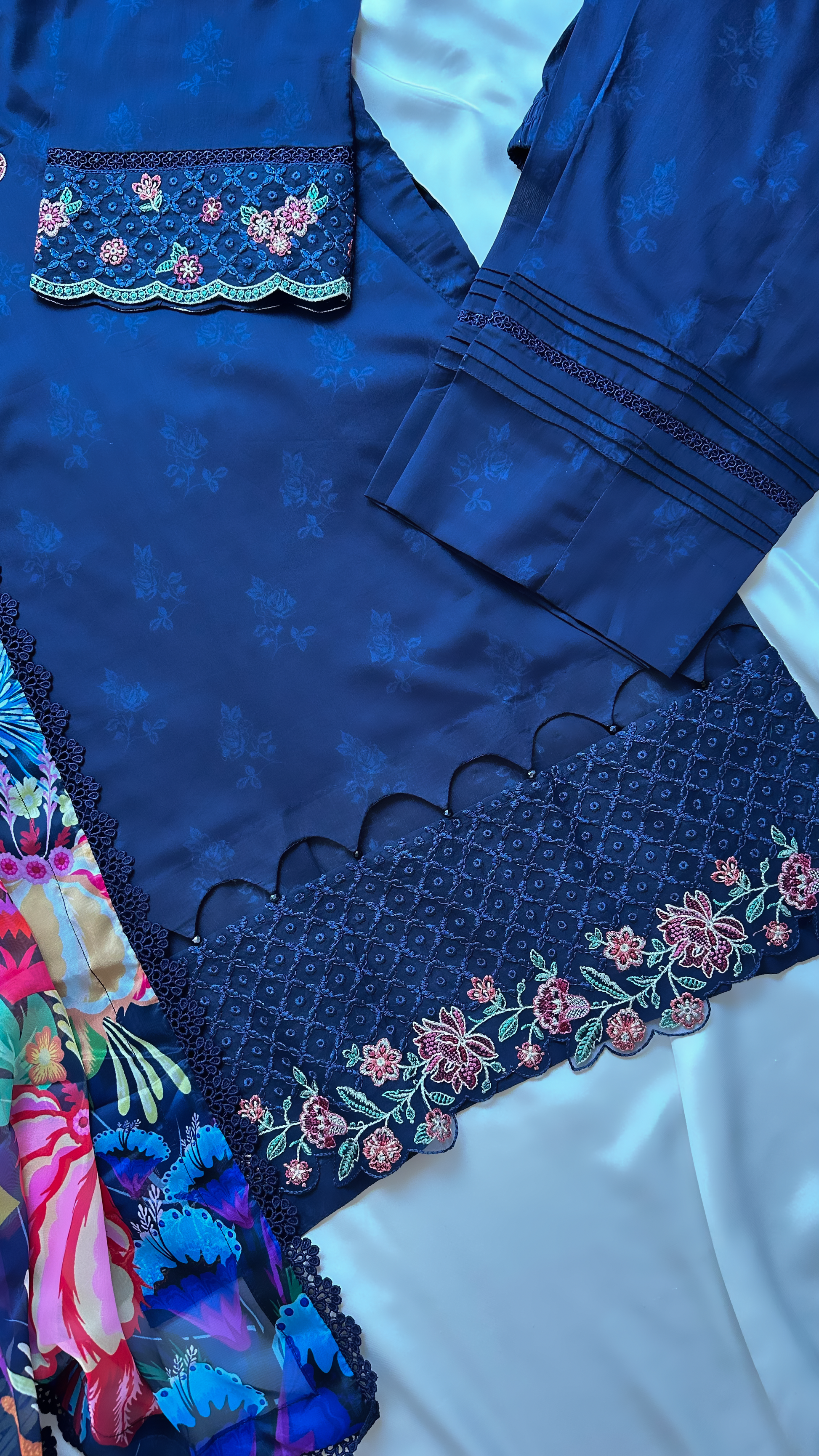 Digital printed borer embroidered lawn sleeves