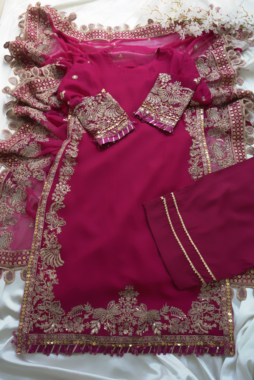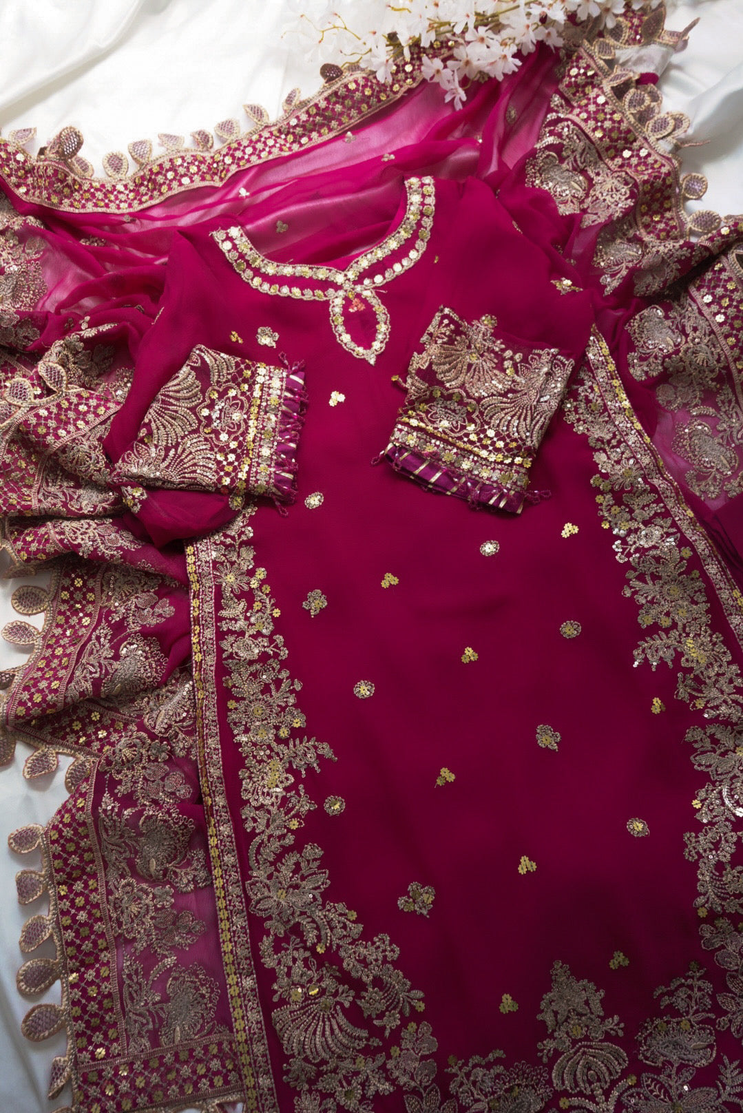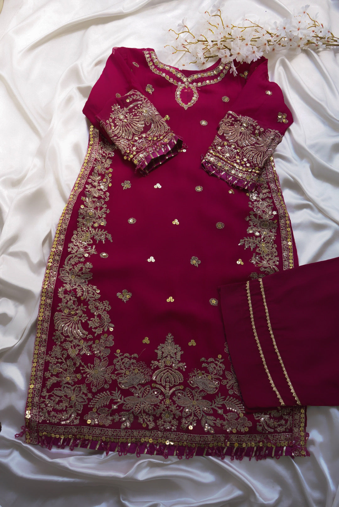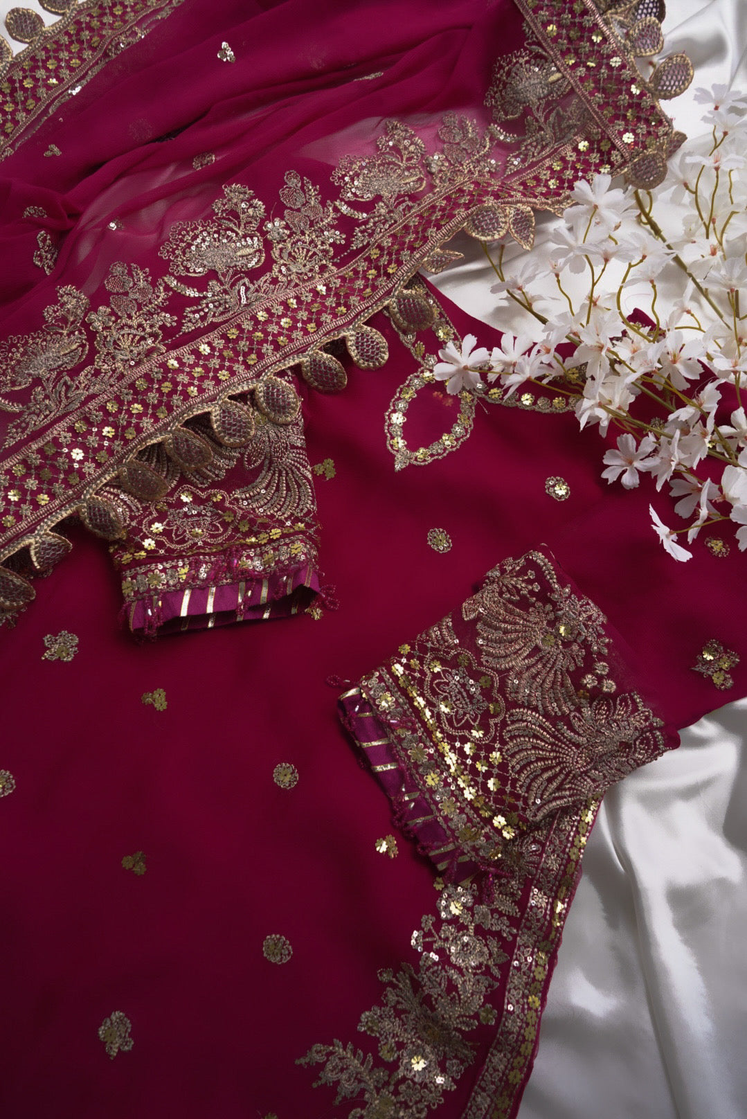 Shirt Sleeves: Sequins Embroidered Chiffon