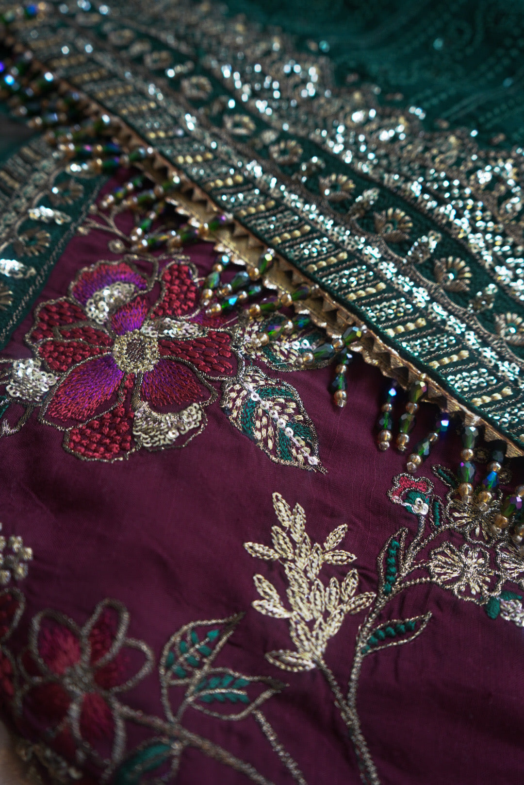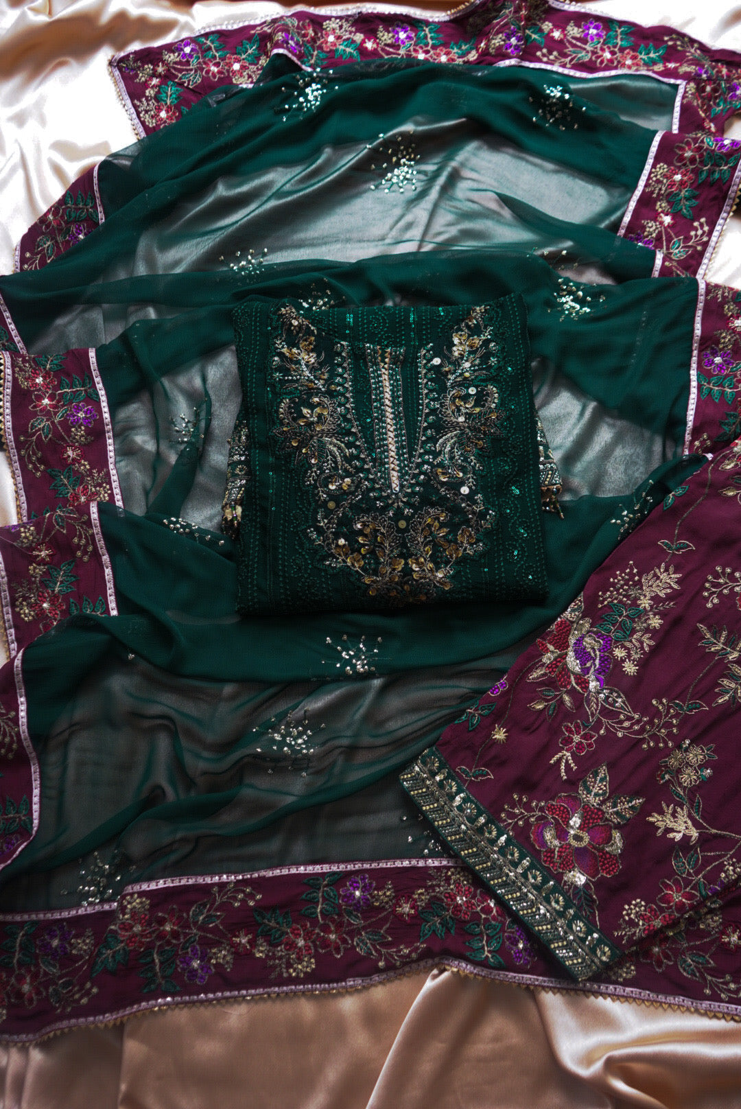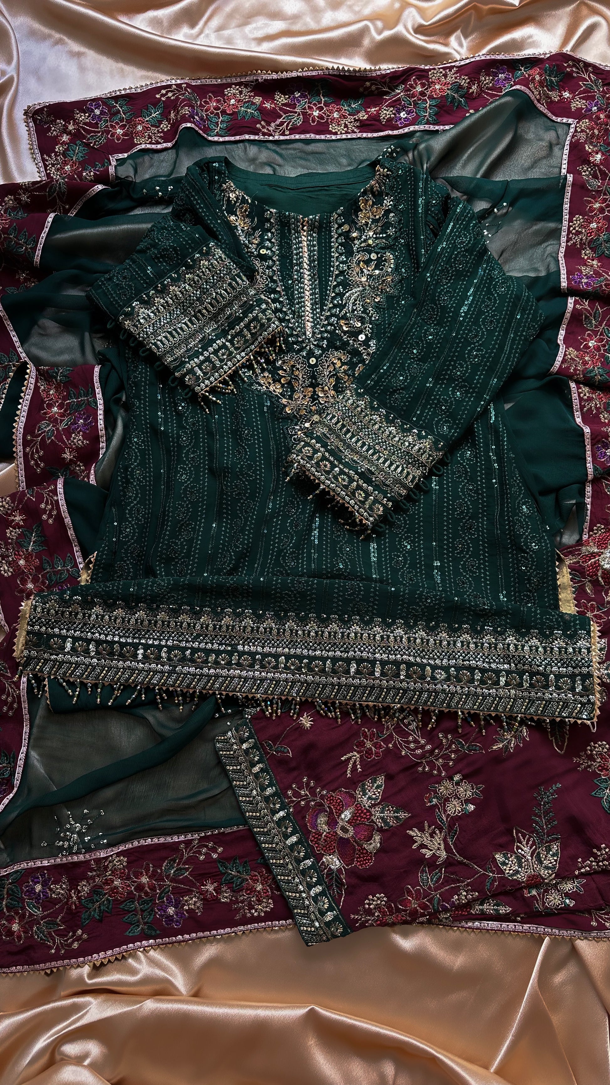 Silk dupatta borders with embroidery on all four sides