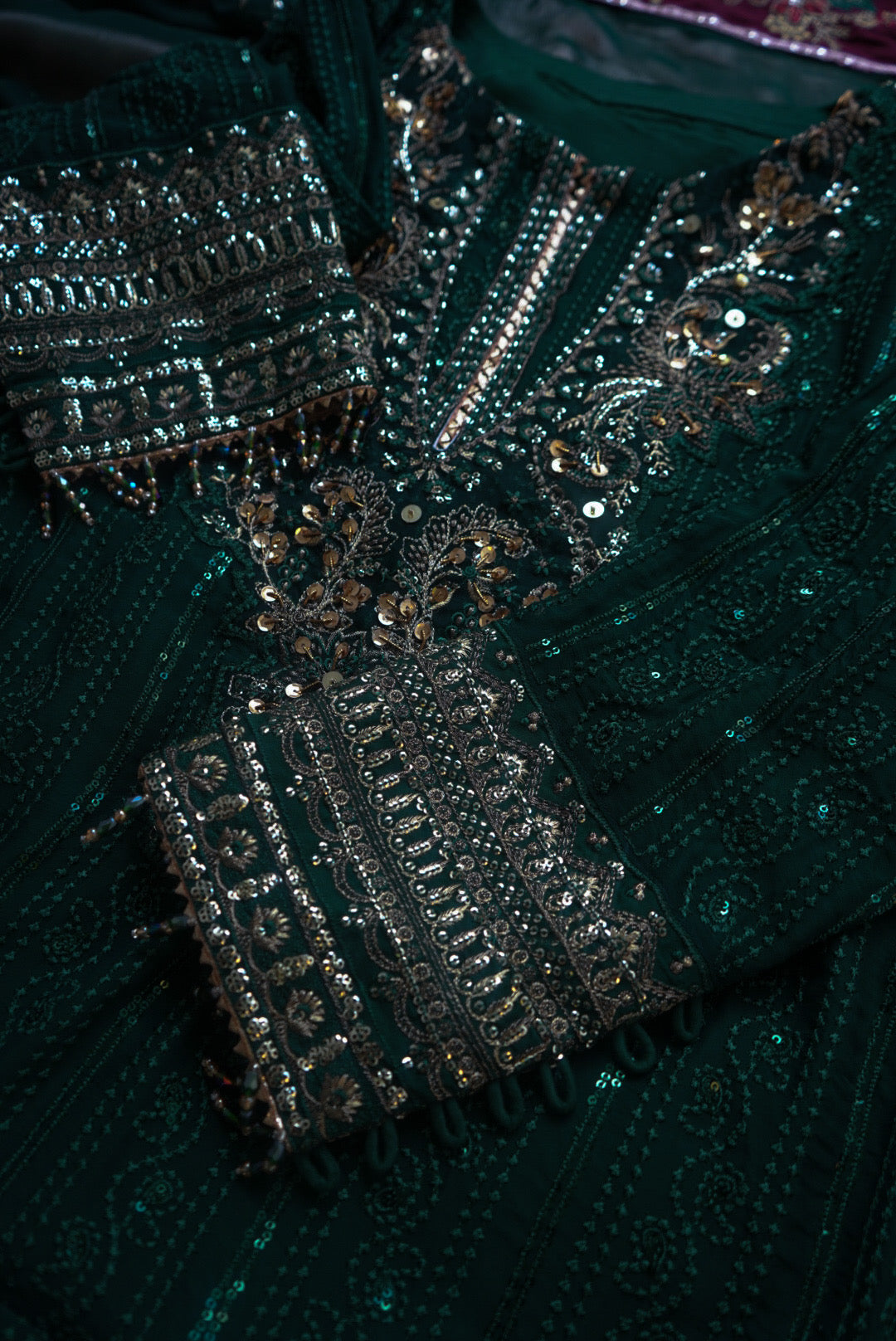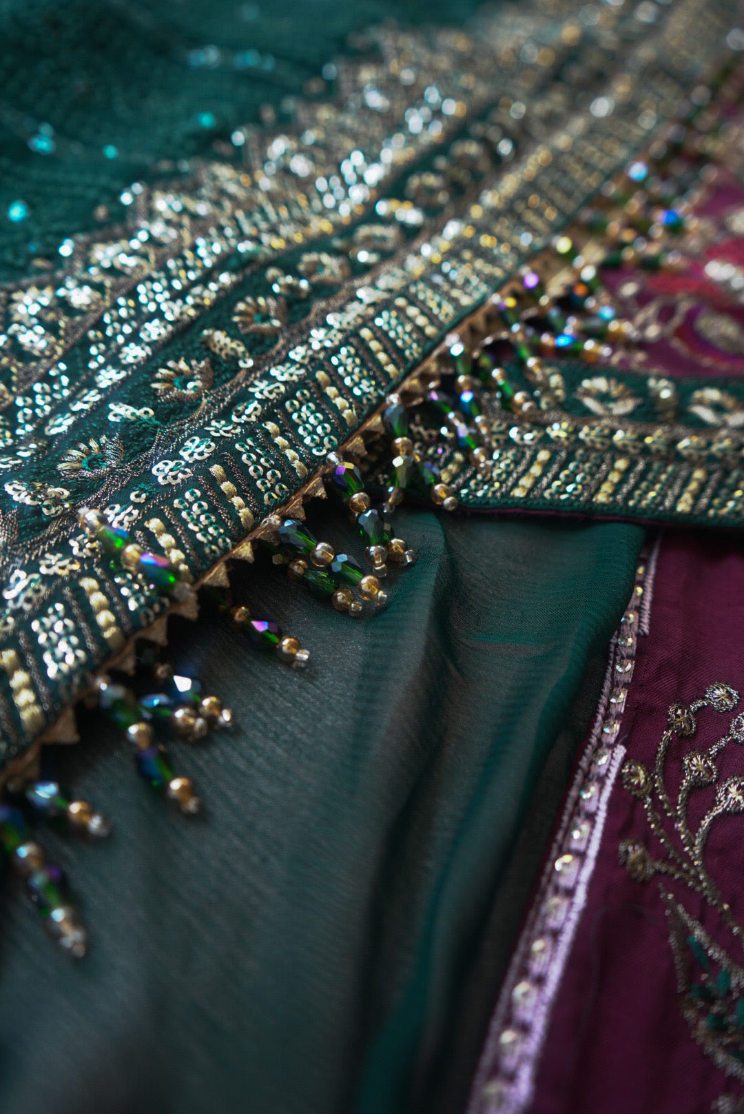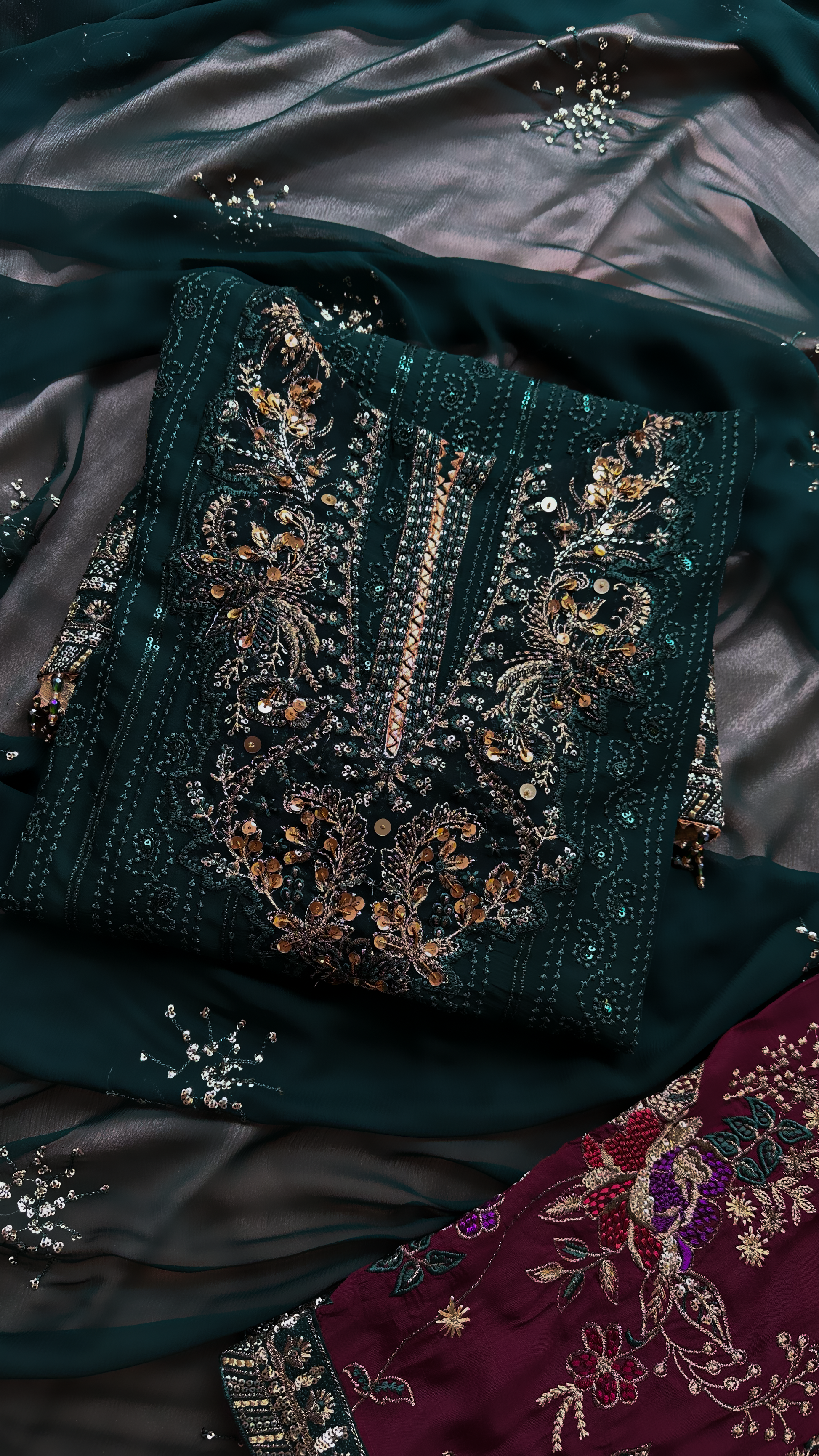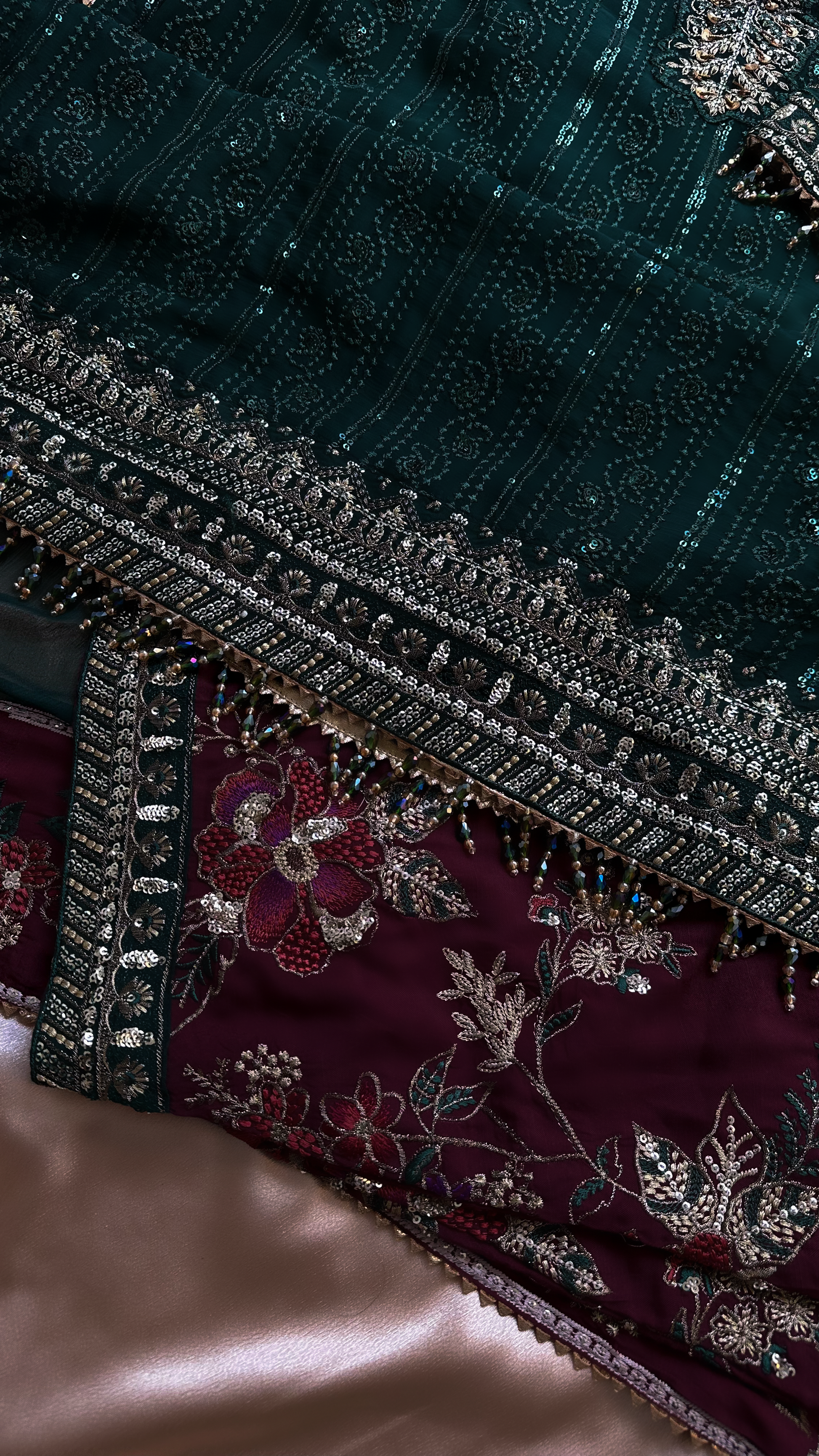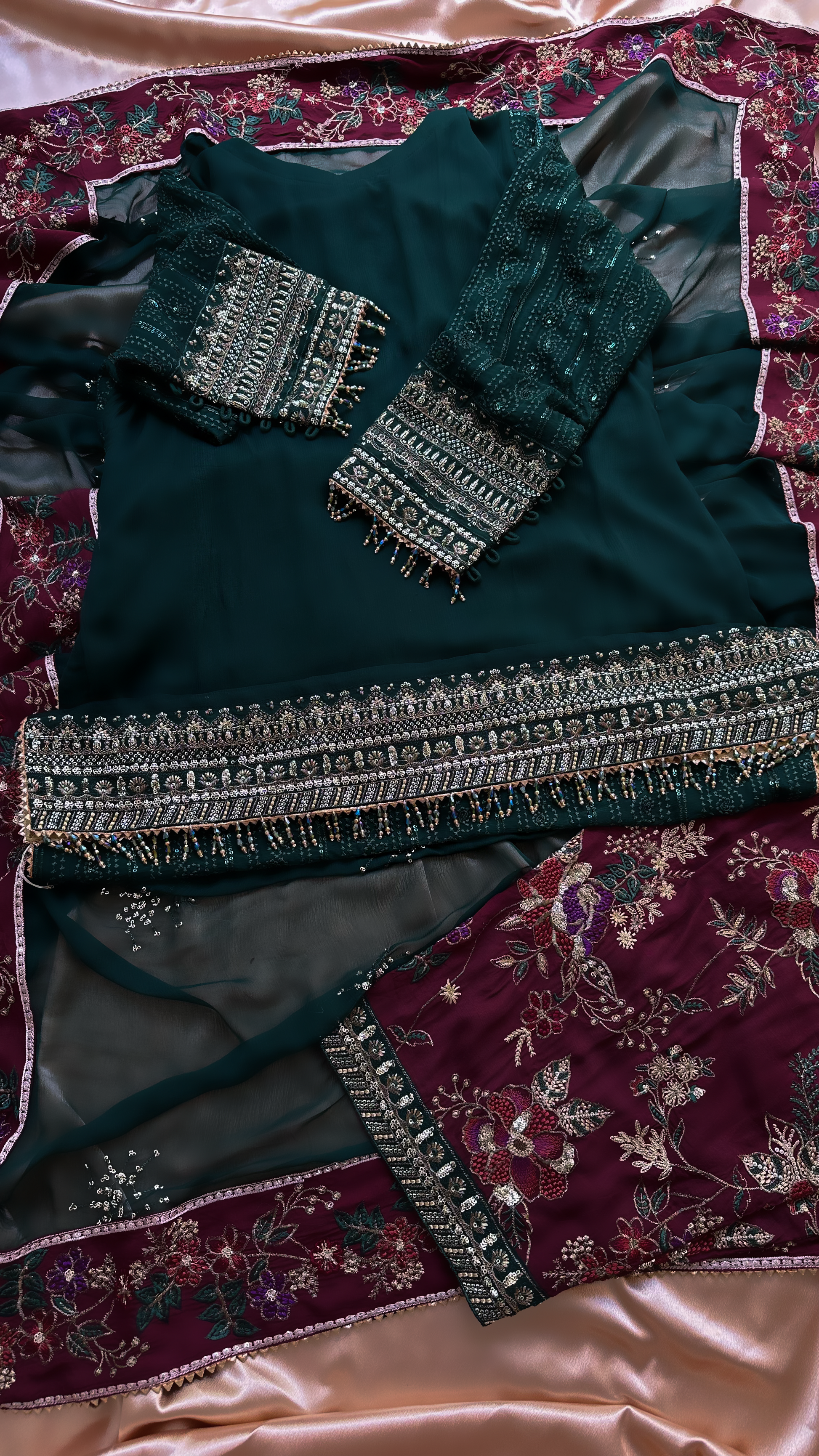 Embroidered organza borders for the front and back daman